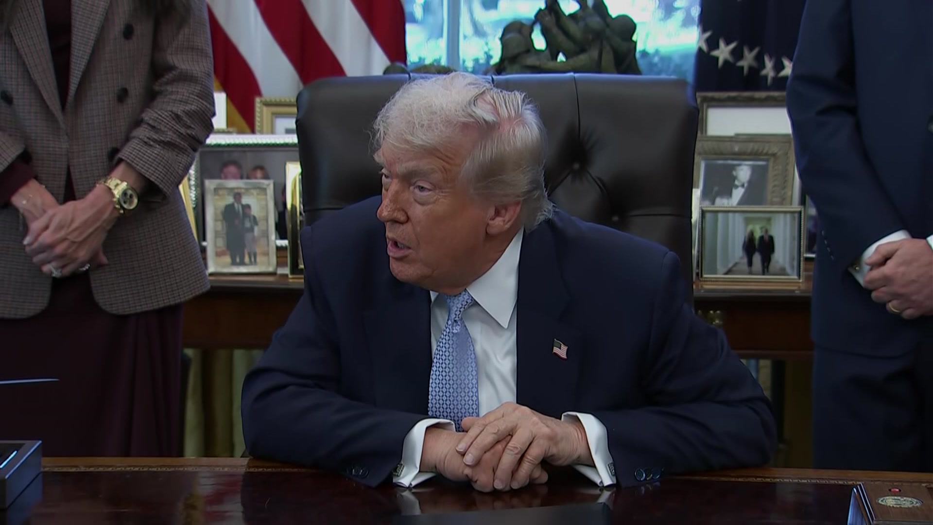 ABC North America correspondent Carrington Clarke asked the US president if he was considering launching strikes or sending troops into Mexico to fight drug cartels.
